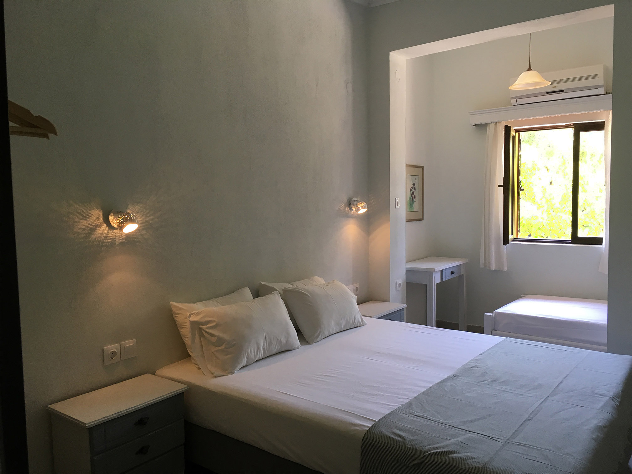 Το υπνοδωμάτιο διαθέτει ένα διπλό κρεβάτι με δυνατότητα προσθήκης και ενός μονού κρεβατιού. Υπάρχει αυτόνομος κλιματισμός, ανεμιστήρας οροφής και τηλεόραση. Προσφέρονται επίσης κλινοσκεπάσματα. Όλα τα στρώματα είναι από 100% φυσικά υλικά (coco-mat). Τέλος, οι πελάτες μας έχουν πρόσβαση σε προσωπικό χρηματοκιβώτιο.