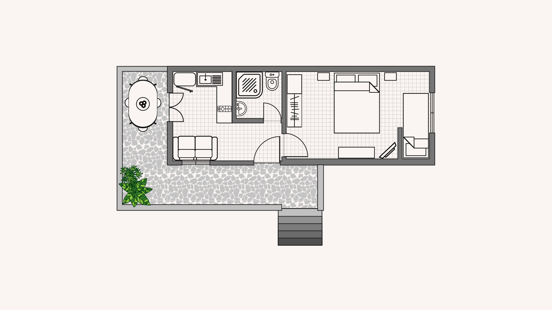 • Λίγα σκαλοπάτια για πρόσβαση στο διαμέρισμα.